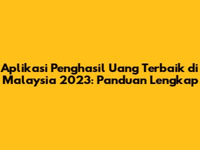 Aplikasi Penghasil Uang Terbaik Di Malaysia 2023: Panduan Lengkap