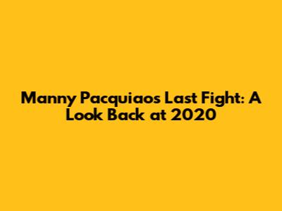 What's up, fight fans! Today, we're diving deep into a question that's been on a lot of our minds: when was Manny Pacquiao's last fight in 2020? It's crazy to think how time flies, and Manny, the "Pac-Man," has had such an epic career. Let's get into it and relive some of that boxing magic.